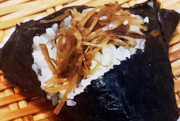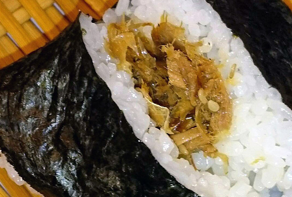 定番おにぎりのひとつです。しその香りの効いた昆布がごはんと非常によく合います。
