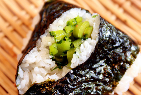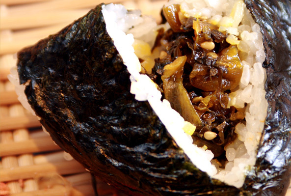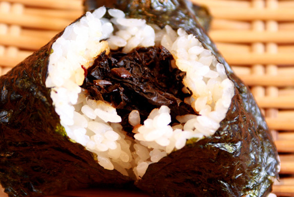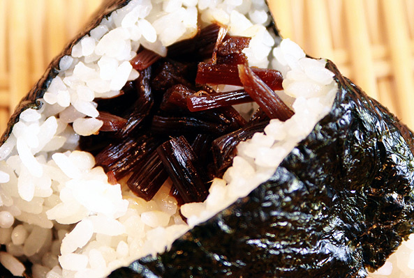 定番おにぎりのひとつです。しその香りの効いた昆布がごはんと非常によく合います。