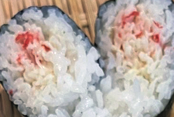 しっかりとした味わいのカニカマをほぐしてマヨネーズとあえたお米との相性が抜群のおにぎりです。
